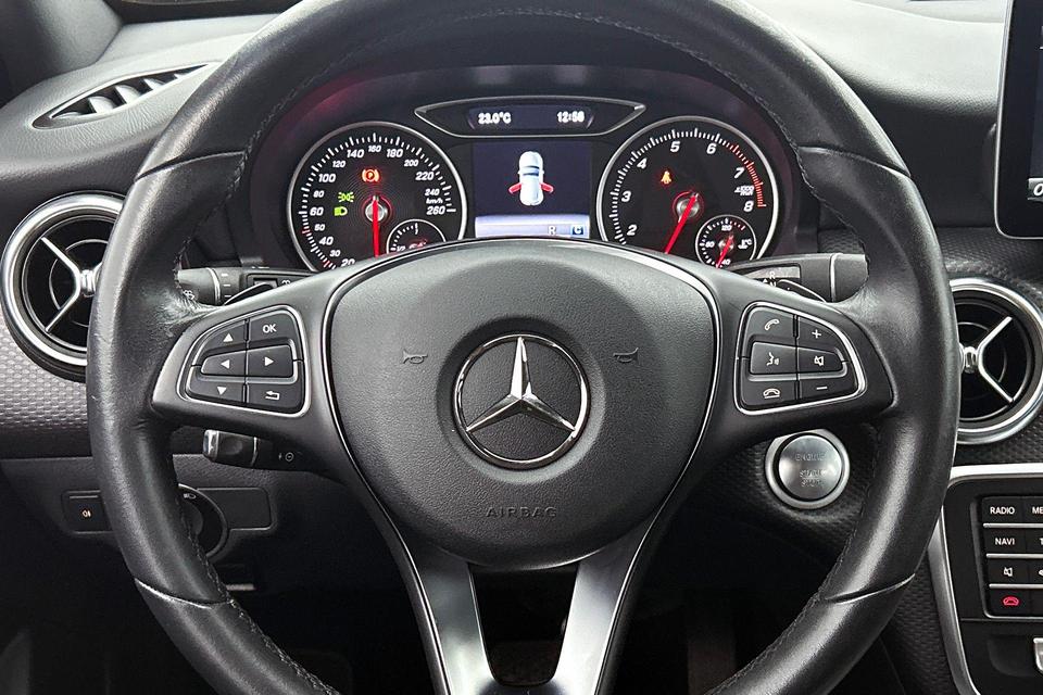 Ingericht op Connected Services, voor een nog veiligere en comfortabelere rit. Het full map navigatiesysteem zorgt ervoor dat u snel en ontspannen op uw bestemming aankomt. Veilig en handig: het audiosysteem laat zich bedienen vanaf het stuur. Parkeersensoren zijn een waardevolle toevoeging aan deze auto. De sensoren waarschuwen tijdens het parkeren en voorkomen schade aan de auto. Om de veiligheid onderweg te verhogen, heeft deze Mercedes-Benz zowel een automatisch inschakelbare verlichting als een regensensor aan boord, zodat hij zelf de verlichting en de ruitenwissers kan inschakelen. Met sportstuur met schakelpaddels, cruise control, airconditioning, isofix-aansluiting en centrale deurvergrendeling met afstandsbediening is deze auto helemaal compleet.