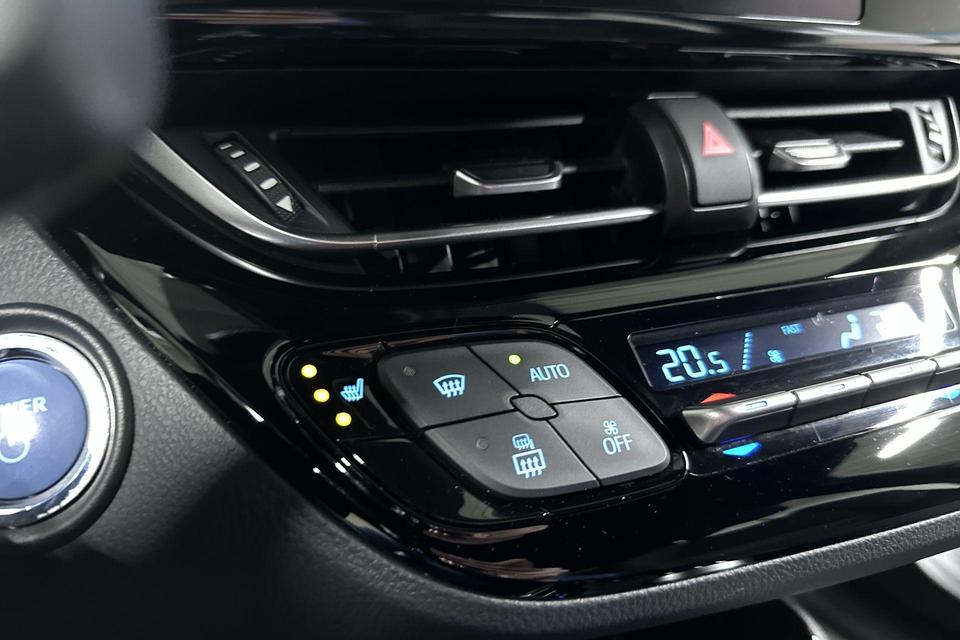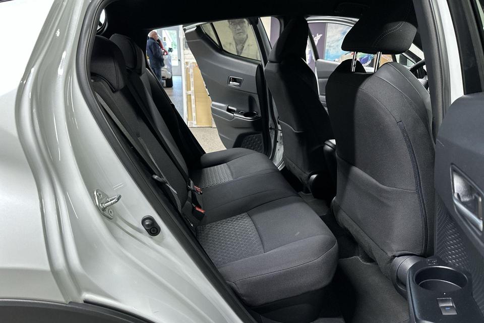 De top is eraf, alle systemen beproefd, de techniek up-to-date. Deze piepjonge Toyota C-HR staat te popelen om er weer op uit te gaan! Elektrisch rijden of toch benzine? Voor allebei is iets te zeggen. Daarom biedt de hybride motor van deze Toyota C-HR de keus. Al is het buiten nog zo koud, de stoelverwarming maakt alles weer goed! Deze Toyota C-HR heeft een verwarmd stuurwiel. Nooit meer koude handen onderweg. Bij de rijke uitrusting horen ook 18 inch lichtmetalen velgen, Full LED koplampen, extra getint glas, in delen neerklapbare achterbank, LED-achterlichten en verstelbare lendensteunen.