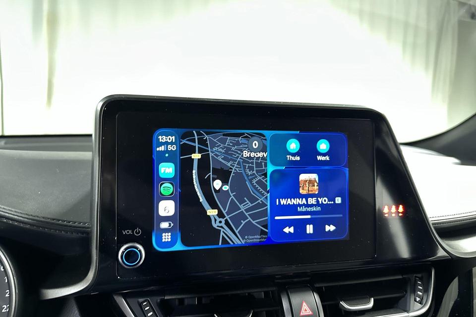 De achteruitrijcamera laat duidelijk zien hoeveel ruimte u nog heeft bij het inparkeren. Adaptive cruise control is een comfortabele en veilige optie. Het systeem reguleert de snelheid en houdt automatisch afstand tot uw voorligger. Vergeten af te sluiten? Bandenspanning onvoldoende? De speciale app geeft u direct een seintje met behulp van Connected Services. Onderweg kunt u veilig genieten van het audiosysteem met DAB-radio en het full map navigatiesysteem. Want in deze Toyota bedient u ze vanaf het stuurwiel of met uw stem. Tot de standaard uitrusting van deze auto hoort ook automatische airconditioning. Wat u ook in deze auto kunt vinden zijn regensensor, keyless entry en automatisch dimmende binnenspiegel.