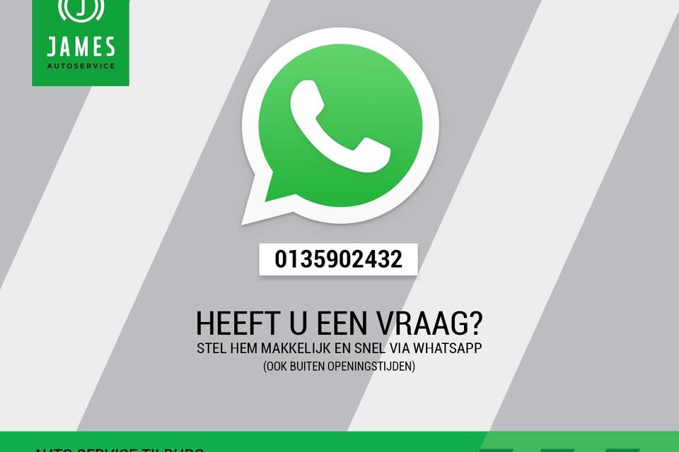 Bel voor meer informatie 013 590 2432 (ook WhatsApp). JAMES Autoservice Tilburg is al meer dan 30 jaar een begrip in TILBURG en omgeving. Kijk voor meer informatie over ons bedrijf, ons aanbod auto's en meer foto’s op onze website WWW.JAMESTILBURG.NL. Informeer naar onze aflevering- en garantiepakketten vanaf 395 euro. Alle moeite is genomen om de informatie in deze advertentie zo accuraat en actueel mogelijk weer te geven. Er kunnen echter geen rechten worden ontleend aan fouten in opties & accessoire lijst.