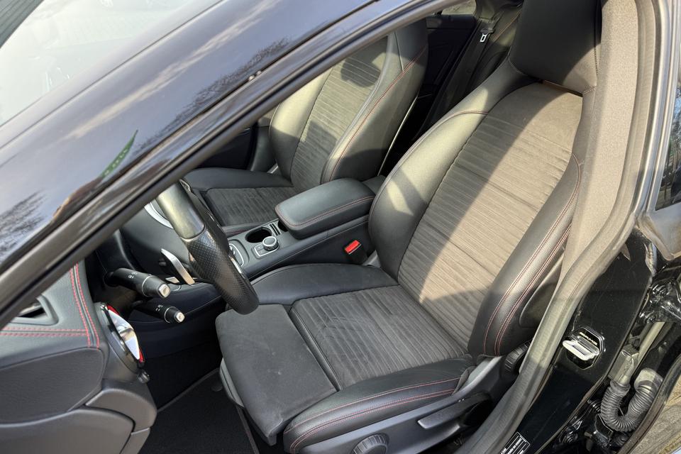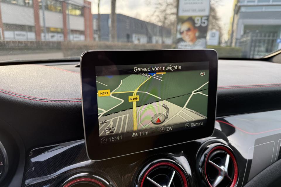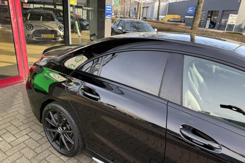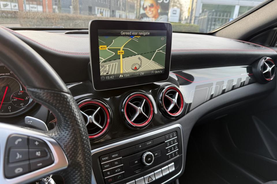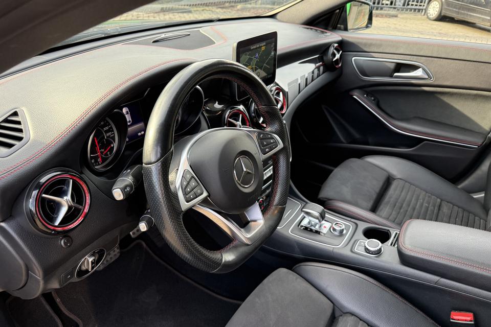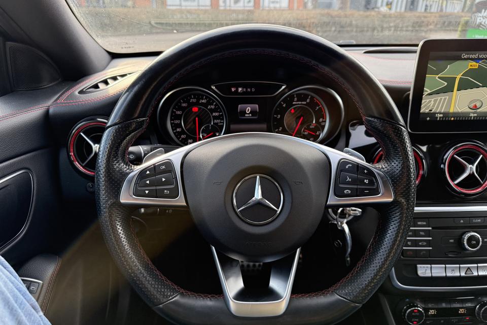 Een occasion om van te dromen. Deze Mercedes-Benz CLA-klasse brengt behalve een pittige motor en een vriendelijke kilometerstand ook de nodige extra's mee. Met de AMG-styling mag deze auto zeker gezien worden. De krachtige motor geeft deze Mercedes-Benz uitstekende prestaties. De auto is voorzien van leren bekleding - een fraaie en sfeerverhogende extra. Ga samen met uw bijrijder lekker zitten in de verwarmbare voorstoelen. Opvallend zijn de stoere sportstoelen, die zorgen voor een onwrikbare zit in de scherpe bochten. Fijn zo'n elektrisch bediend glazen panoramadak. U wordt in deze auto ook getrakteerd op 18 inch lichtmetalen velgen, LED koplampen, AMG-styling, sportonderstel, halflederen bekleding en zwarte hemelbekleding.