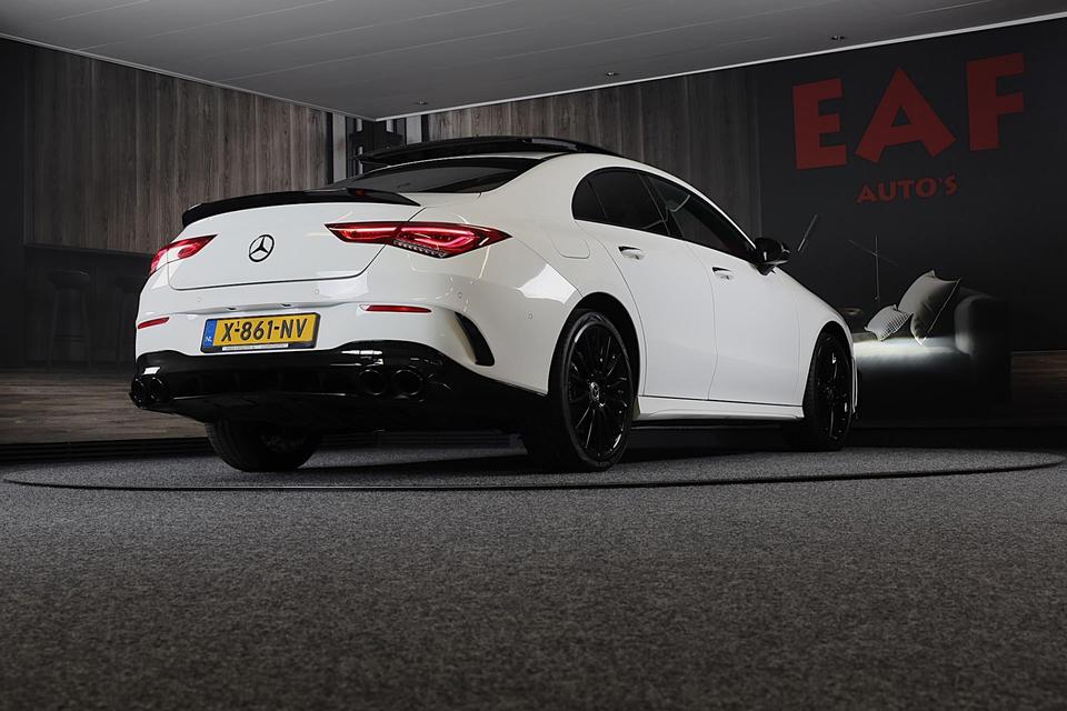 Van een auto mag u het nodige verwachten, vinden ze bij Mercedes. Topkwaliteit in alle opzichten, vandaar de slogan ‘The best or nothing'. Hier ziet u een perfect voorbeeld. AMG Line Exterieur benadrukt de sportieve functionaliteit van het ontwerp. Een krachtige motor geeft deze auto zijn sportieve prestaties. Elke rit in deze Mercedes-Benz CLA-klasse heeft een tikje meer, dankzij het lederen interieur. U past de stoelen moeiteloos aan, ze zijn elektrisch in te stellen en hebben bovendien een geheugen. Volop licht en ruimtelijk gevoel geeft het elektrische bediende glazen panoramadak. Met de krachtige xenonverlichting rijdt u ontspannen in het donker. De uitmonstering van deze auto wordt gecompleteerd door onder meer 19 inch lichtmetalen velgen, sportonderstel, extra getint glas, AMG-stijl sportinterieur, zwarte hemelbekleding, LED-achterlichten, verstelbare lendensteunen, metallic lak, elektrisch inklapbare buitenspiegels, LED-dagrijverlichting en in delen neerklapbare achterbank.