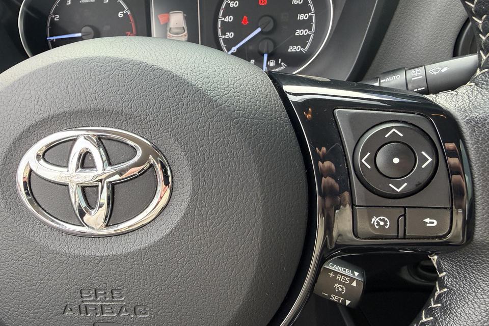 Alles vrij achter? De achteruitrijcamera laat het meteen zien. Audiosysteem en full map navigatiesysteem zijn gecombineerd. Zo wordt zelfs gesproken route-informatie een luisterervaring! En dankzij bluetooth klinkt uw favoriete playlist geweldig. De automatische airconditioning zorgt onder alle omstandigheden voor een prettige temperatuur. De regensensor in de voorruit schakelt de ruitenwissers automatisch in en uit. Meer rijcomfort en minder brandstofgebruik? Even de cruise control instellen en dan ontspannen rijden! Deze Toyota is voorzien van lederen stuur, centrale deurvergrendeling met afstandsbediening en lederen versnellingspook.