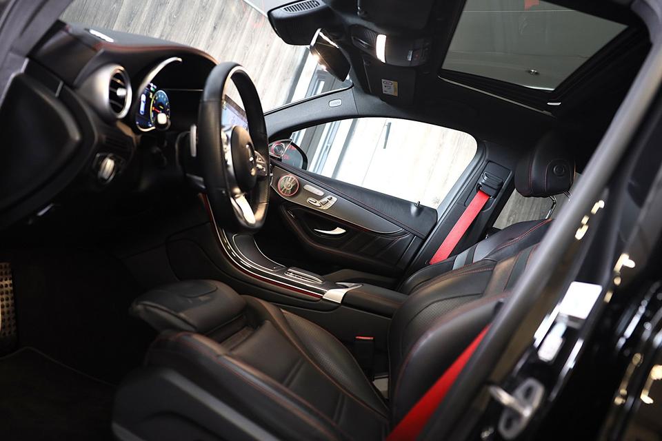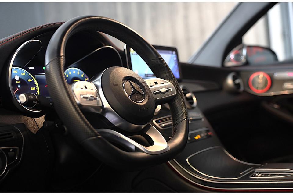 'The best or nothing', zeggen ze bij Mercedes. En daar is deze Mercedes-Benz GLC-klasse Coupé het bewijs van. AMG-styling vertegenwoordigt de overtreffende trap in smaakvolle sportiviteit. De uitstekende prestaties van deze auto komen van de viercilinder motor en de automatische transmissie. Klinkers of asfalt? U merkt het verschil niet door de luchtvering. Deze Mercedes-Benz GLC-klasse Coupé komt in de luxe uitvoering, inclusief lederen interieur. U past de stoelen moeiteloos aan, ze zijn elektrisch in te stellen en hebben bovendien een geheugen. Het interieur lijkt groter en ruimtelijker dankzij het elektrisch bedienbare glazen panoramadak. De bagageruimte is toegankelijk via een comfortverhogende elektrische achterklep. Xenonverlichting zorgt in het donker voor beter zicht. De uitmonstering van deze auto wordt gecompleteerd door onder meer open dak, 20 inch lichtmetalen velgen, LED koplampen, AMG-styling, sportonderstel en warmtewerend glas.